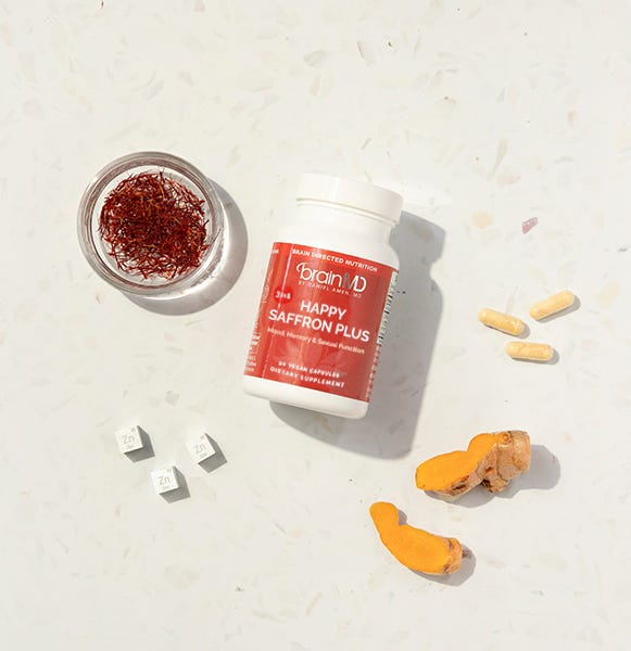 No. Happy Saffron Plus can be used in conjunction with any of BrainMD’s mood supplements.